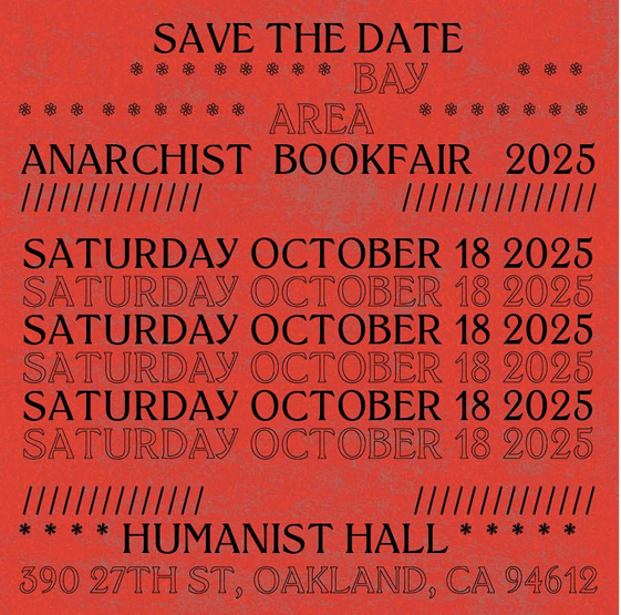 Oakland, CA: https://www.instagram.com/bayareaanarchistbookfair/ October 18th, Humanist Hall